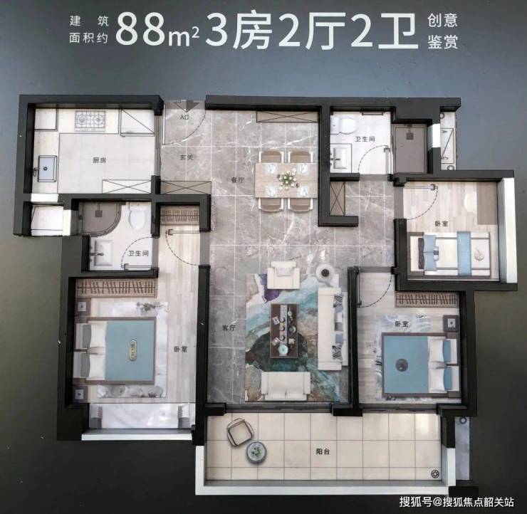 建面约88㎡3房2厅2卫