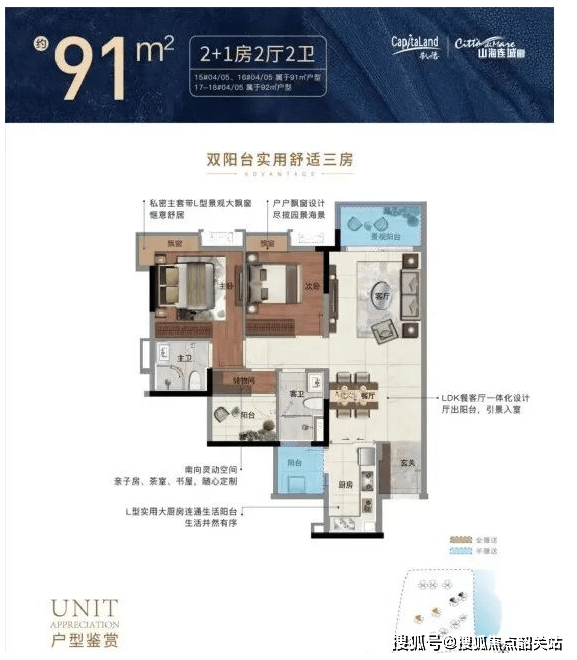 91㎡/106㎡三房两厅两卫:南北通透,双卫配置提升居住舒适度;
