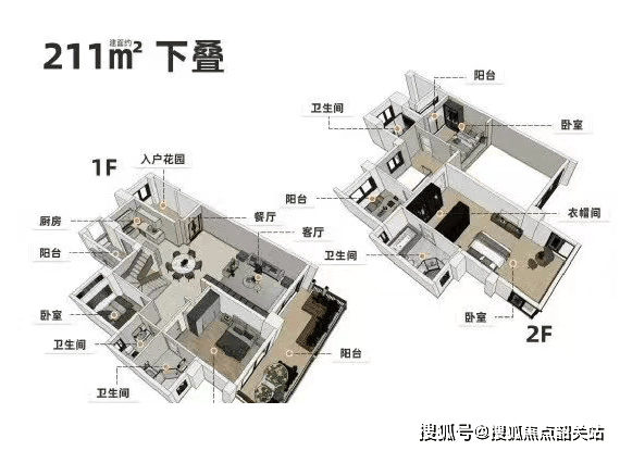 下叠建面约211㎡,自带超大私家庭院,可打造花园、露台或休闲区;
