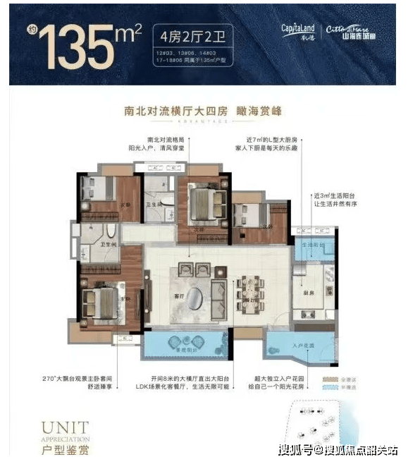 130㎡B/135㎡四房两厅两卫:主卧套房设计,动静分区明确。