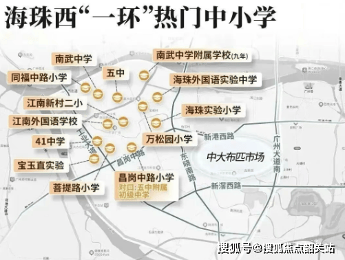 地块北侧026、001号地块已明确调整为中小学用地,占地约2万㎡,规划引入昌岗中路小学办学。该校为海珠老牌优质小学,近年多次发布学位预警,教育口碑扎实。更关键的是,昌岗中路小学拥有对口直升广州市第五中学的资格——五中为海珠区重点中学,此“小升初直通”路径在海珠西极为稀缺,构成强有力的教育吸引力。