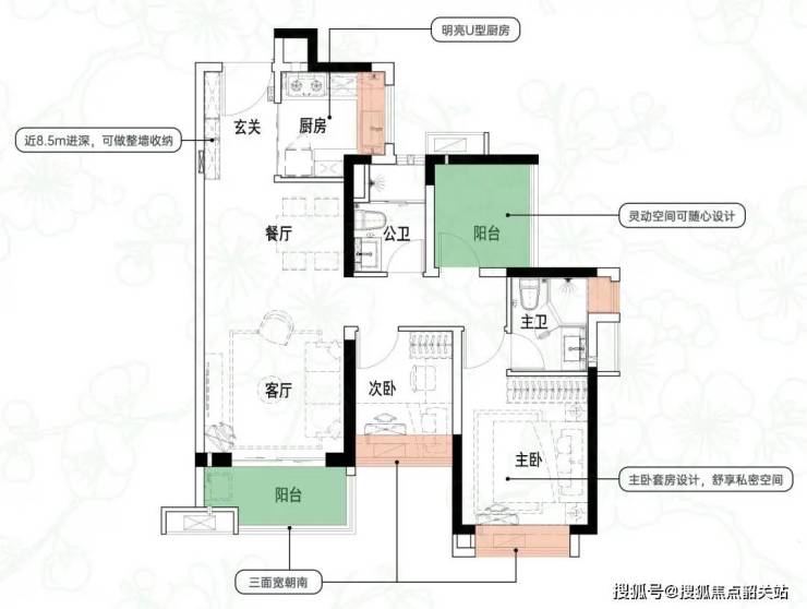 越秀·滨海花城匠心设计了多种户型,满足不同家庭的需求。以下是几个典型户型的详细介绍: