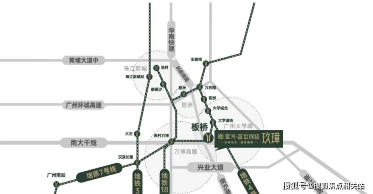项目交通优势显著,紧邻地铁7号线板桥站,三期组团距离该站约700米,步行即可轻松抵达。通过地铁7号线,无需换乘2站即可直达万博核心商圈,5站抵达琶洲商务区,快速接驳珠江新城、金融城等城市核心板块。地面交通方面,出门即上南大干线,这条贯穿番禺的交通大动脉无缝连接广州南站、长隆万博、国际创新城等重要节点,自驾出行可快速通达全城。同时,周边公交网络密集,多条线路覆盖日常出行需求。多维交通网络的交织,不仅让业主日常通勤高效便捷,更实现了与粤港澳大湾区各城市的快速联动,轻松享受“半小时生活圈”的便利。