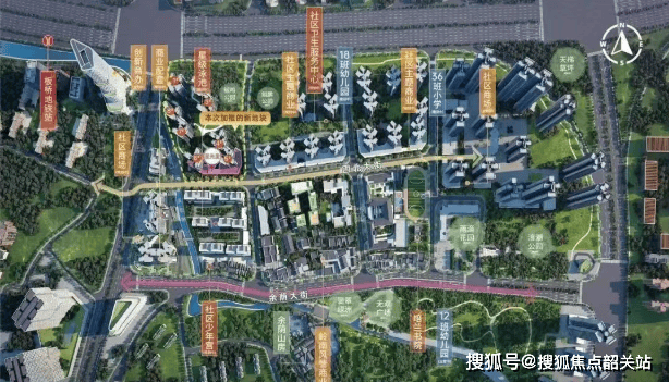 小区采用全南向围合式布局,楼栋转体40°,确保所有户型朝南,最大化利用自然光。项目内设有自持的1.6万方社区商业和约4万方岭南风情商业街,后者将对标佛山岭南新天地,提供独特的购物体验。此外,还引入了番禺中学教育集团学校,目前该学校已开学,为住户子女提供优质教育资源。