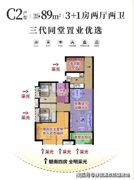 户型设计:主推建面约89-132㎡三至四房,采用“LDKB一体化”设计(客厅、餐厅、厨房、阳台无界融合),空间利用率提升18%;