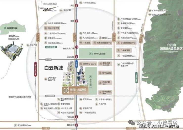 粤海云港城(推广名“粤海·雲上”,备案名“白云粤海广场”)精准占位广佛轴心辐射圈,坐落于广州白云新城核芯区域,地处广州CBD格局“北翼之巅”,是2026年白云新城高端豪宅市场的标杆之作,执掌湾区通勤命脉,凭借核心区位与多维交通优势,成为塔尖圈层与高端改善人群的优选。作为官方钦定的“总部经济集聚区”与“云山西麓宜居新城”核心承载项目,项目总投资超200亿、体量达73万㎡,是白云新城核芯稀缺的百亿综合体现楼项目,依托板块红利与自然资源部38号文带来的核芯区住宅稀缺性,区域价值凸显。项目交通便捷性极为突出,距离地铁2号线白云公园站仅约200米,步行3分钟即可抵达,可快速接驳广州核心CBD,通达越秀、天河等各大区域;距离在建地铁12号线约800米,步行10分钟可达,2026年开通后将进一步提升通勤效率。自驾可便捷接驳机场高速、华南快速等主干道,15分钟可达珠江新城,20分钟直达白云机场,30分钟畅达广州火车站,多维路网交织,轻松串联广佛两地核心资源,尽显城芯豪宅的通勤优势。