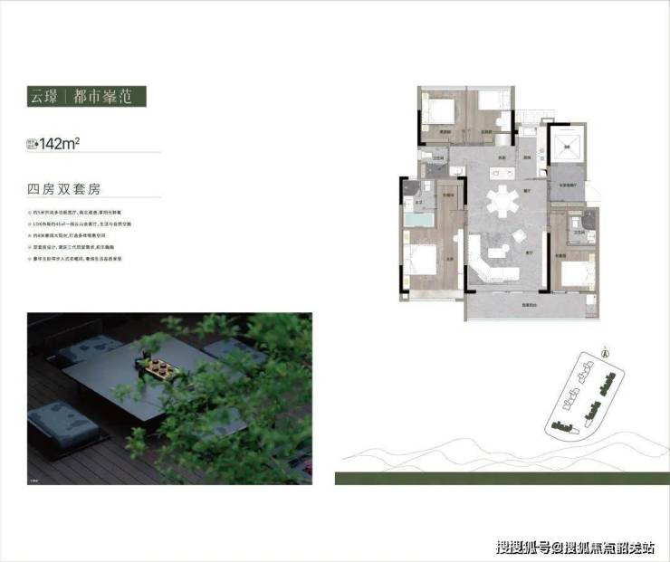 143㎡楼王:270°转角飘窗,主卧套房带衣帽间,视野直面小区中央园林。