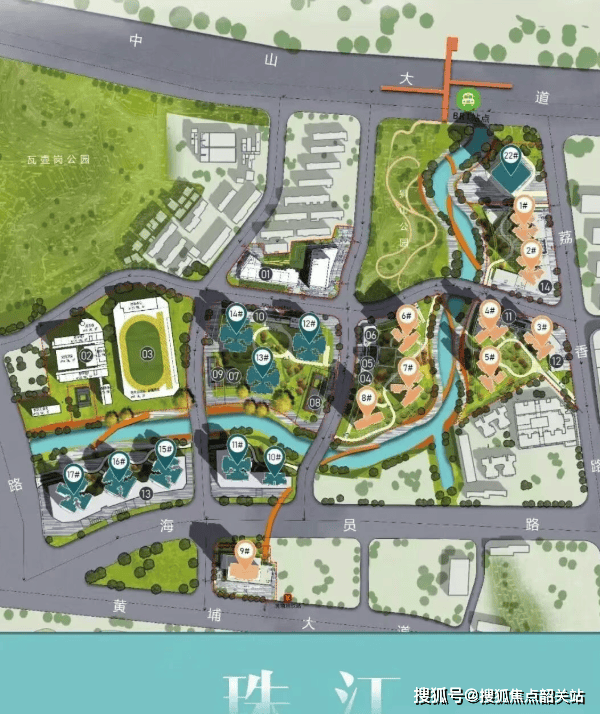 项目雄踞黄埔区鱼珠板块核心腹地,直线距离港航大厦仅约800米,是老黄埔旧改项目中最靠近天河的江景大盘。南向距珠江仅约250米,坐拥约630米宽阔江面,推窗即揽浩瀚江景。更难得的是,项目三山环绕——蟹山公园、瓦壶岗公园、狮山公园近在咫尺,未来还将通过河涌整治与生态修复,打造连通三大公园的滨水景观长廊,真正实现“城中有园、园中有城”的生态宜居理想。