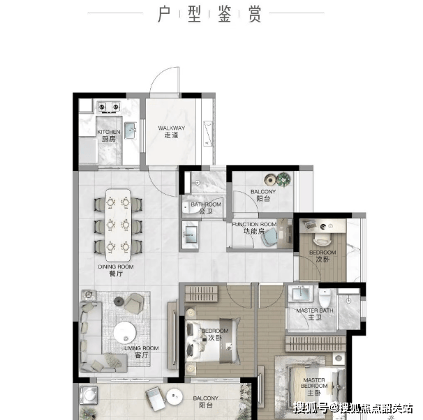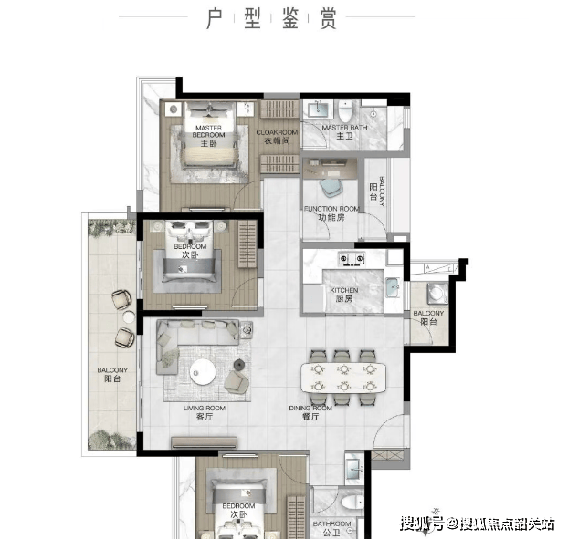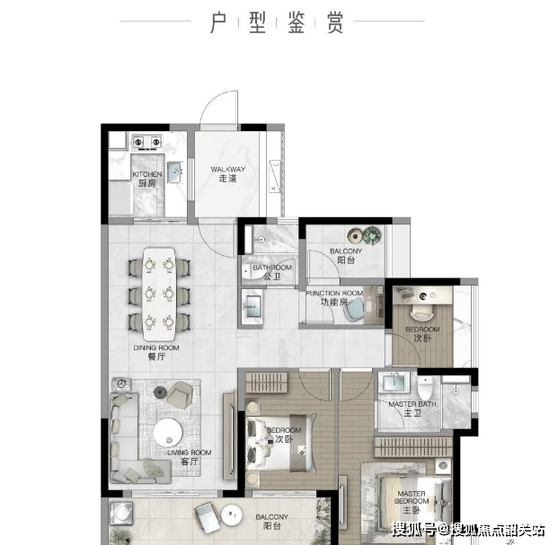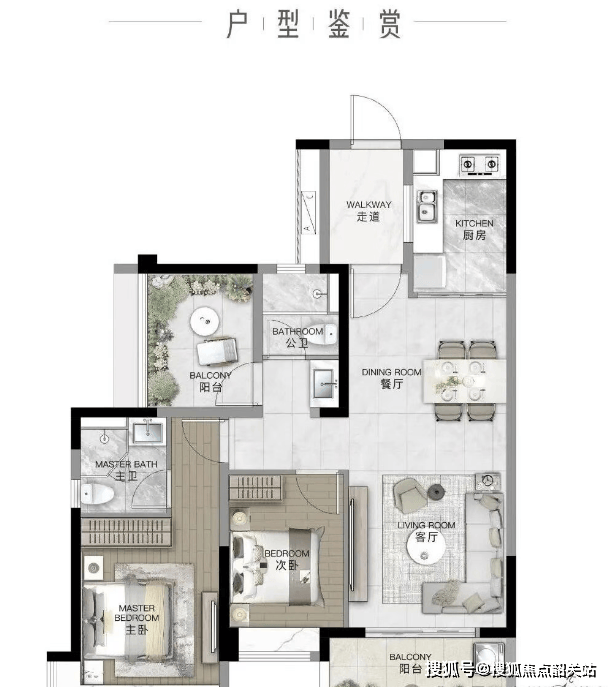 98㎡ 2+1房2厅2卫:豪华主卧套间,配有超大270度转角飘窗,赠送面积大,性价比极高。