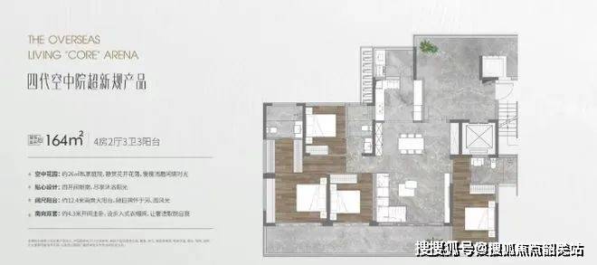 2. 建面约164㎡四房两厅三卫(双主卧设计)