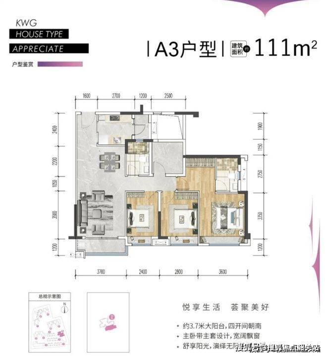 户型面积77-111㎡,3-4房设计,精装交付,舒适宽敞大厅,适合家人齐聚。2梯6户20层洋房;超高使用率,高达80%;动静区分明,互不打扰适合大家庭居住。