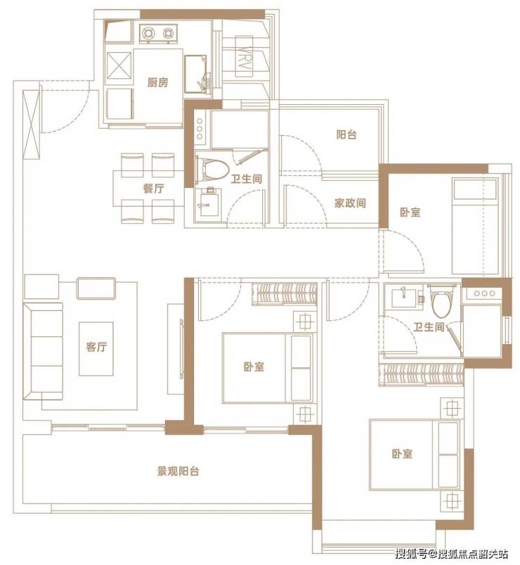 ✨【102㎡户型】南向纯四房,视野开阔,可南向俯瞰地块三中央园林景观,三开间朝南四房设计,舒居四房。
