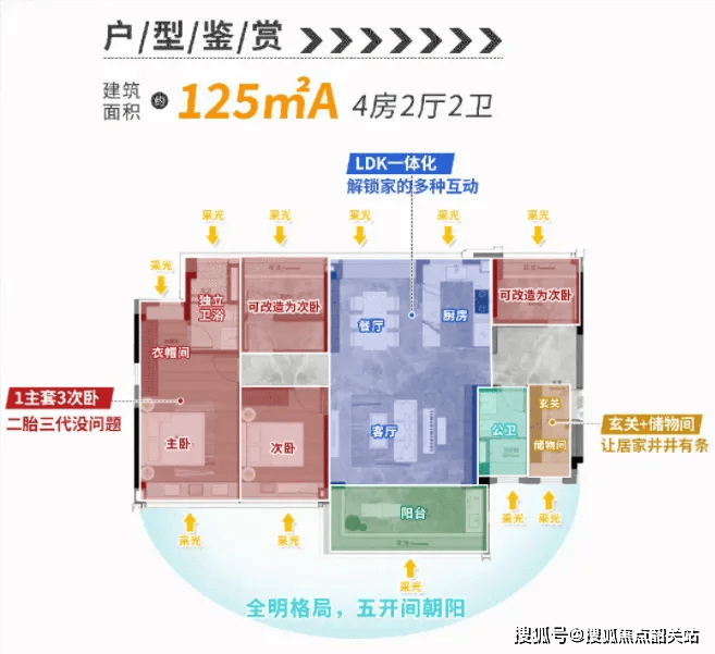 125㎡四房两厅两卫|二胎家庭优选,南北通透享江景