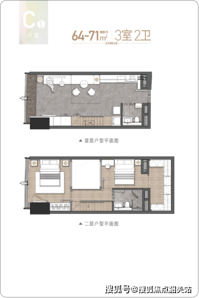 建面约48-52㎡百变Loft,自住、工作、生活三不误