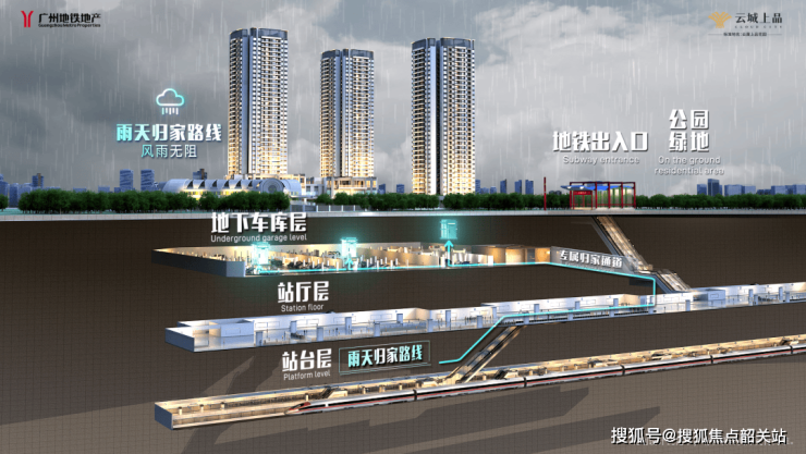 项目创新打造了广州市场上少有的业主专属归家通道,实现了住宅社区与地铁站点的无缝衔接,业主可通过专属电梯与地下通道,从地铁站厅直达社区地下室大堂,全程无需出站,无需经历日晒雨淋,真正实现了无风雨归家的居住体验。相较于普通地铁盘,项目的专属归家通道实现了轨道交通与居住空间的一体化设计,大幅缩短了业主从家到地铁站的通行时间,日常通勤无需绕行地面道路,无需等待红绿灯,即使是暴雨、高温等极端天气,也能实现从容出行。同时,专属归家通道仅对项目业主开放,设置了多重门禁与安防系统,既保障了通行的便捷性,也充分保障了社区的私密性与安全性,为业主打造了专属、便捷、安全的出行归家动线。