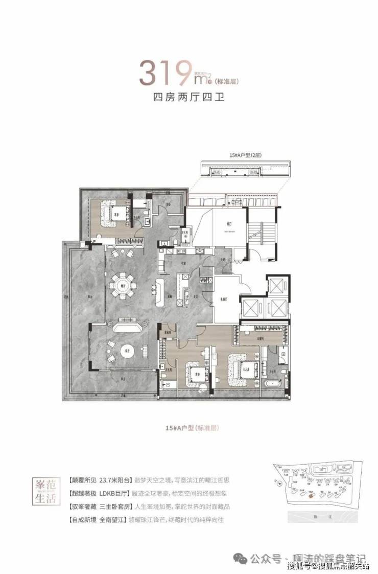 产品类型:建面约125-142㎡南向江景四房、建面约214-319㎡一线江景大平层