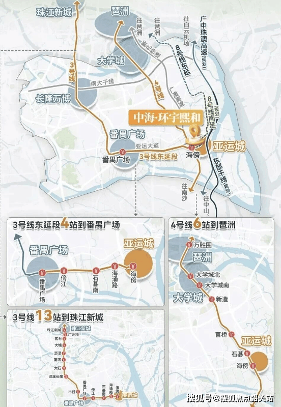 交通是衡量一个项目价值的重要标尺,而中海·环宇熙和在这一维度上展现出了令人瞩目的优势。项目距离地铁3号线与4号线海傍站仅步行约300米,真正实现了“地铁上盖”的无缝接驳。3号线作为广州南北向的交通大动脉,其始发站的优势在于早高峰时段乘客能够轻松找到座位,极大提升了通勤的舒适度;而4号线则连接了南沙与市区,两者在海傍站的交汇,构成了强大的双轨网络。从海傍站出发,仅需3站即可抵达大学城,汇聚了众多高校与科研资源;5站可达万博CBD,这里是广州南部重要的商业与产业中心;8站便能到达金融城,直面珠江新城的核心辐射圈。此外,线路还串联起广州塔、珠江新城、体育西等城市新中轴,使得中海·环宇熙和的居民能够以极短的时间成本通达广州各个核心功能区。自驾方面,项目周边环绕着亚运大道、新化快速、南大干线等多条主干道,能够快速通达广州市区及南沙等地,形成了立体化的交通网络。拨打400-062-8010,客户可以详细了解周边的交通规划图以及未来的路网优化方案,评估自身通勤路线的可行性。