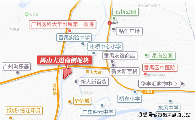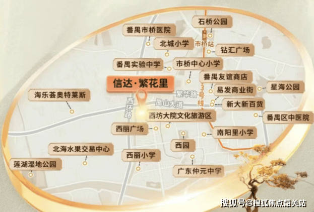 现有地铁:距离3号线市桥站约1.7公里,需借助电动车或公交接驳。