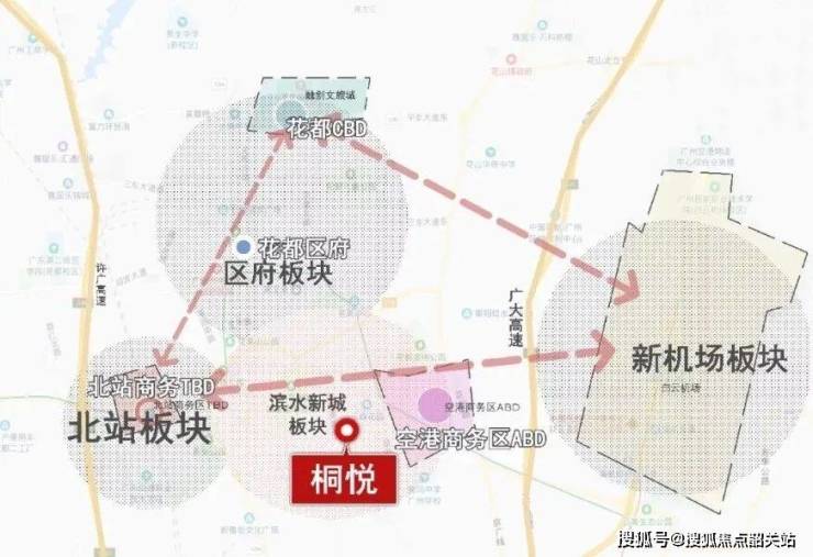 外部:桐悦定位于花都滨水新城板块,该板块毗邻机场板块、广州北站板块和花都区府板块,号称花都“商务金三角”腹地,规划起点甚高。
