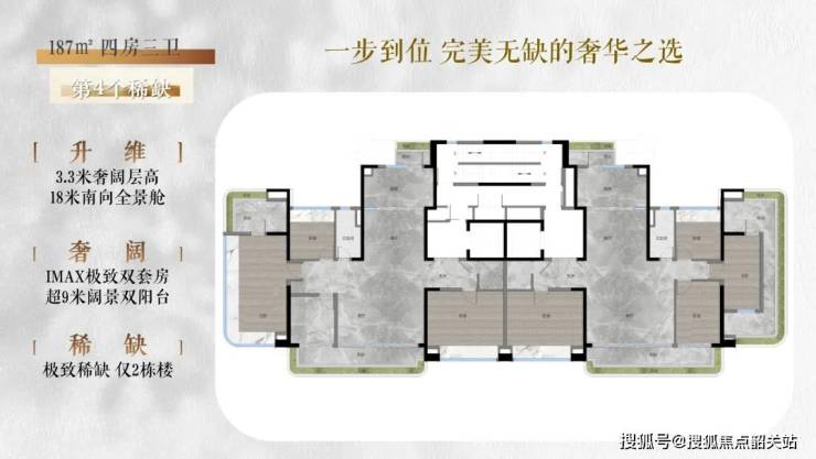 主力户型:125㎡三房(总价约1060万元)、143㎡四房(总价约1215万元)、180㎡五房(总价约1530万元)。