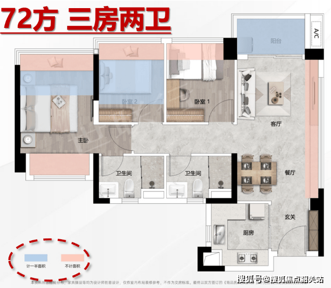 答:是的,根据项目发布的户型资料,约70平方米的三房户型确实设计了两个卫生间。这主要通过优化空间布局和利用新规下的不计容面积(如飘窗等)来实现,使得在有限的建筑面积内也能满足多人口家庭对卫浴空间的需求,提升了居住的舒适度与私密性。