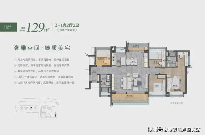 户型面积:建面约72-105㎡3+1房、110-143㎡阔境臻品