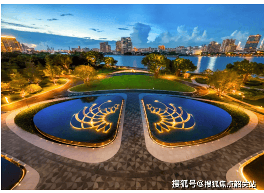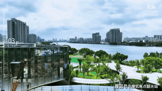 在社区景观与休闲配套方面,项目借鉴新加坡设计理念,采用抬高式盖板创新设计,连接盖上住宅、架空园林、盖下滨水商业及亲水港湾步道,打造广州罕有滨水共融综合体。项目采用“7+7”米抬高盖板+浮岛园林设计,在约7米抬高式盖板之上,还打造了约7米架空层,形成14米的高度差,不仅保证了户户无遮挡的江景视野,更打造了独特的立体景观空间。