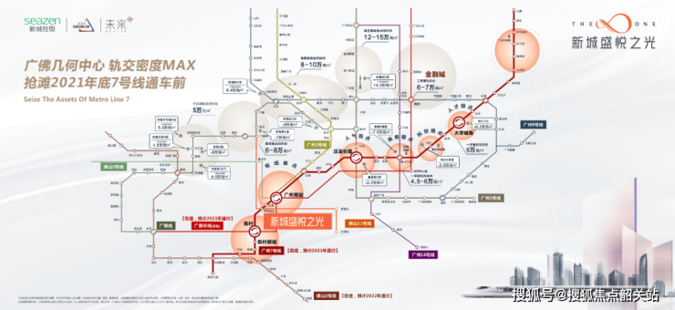 【最强轨交】广佛环线、广州地铁7号线、佛山2号线及地铁11号线四轨交汇,7号线及广佛环线预计今年年底开通,项目离地铁口约200米,人行天桥连接,步行直达,1站广州南、3站广州大学城 (科学中心站),4站达琶洲站,5站达金融城站、6站到广钢新城站,30分钟即可通达广佛各大核心商圈。