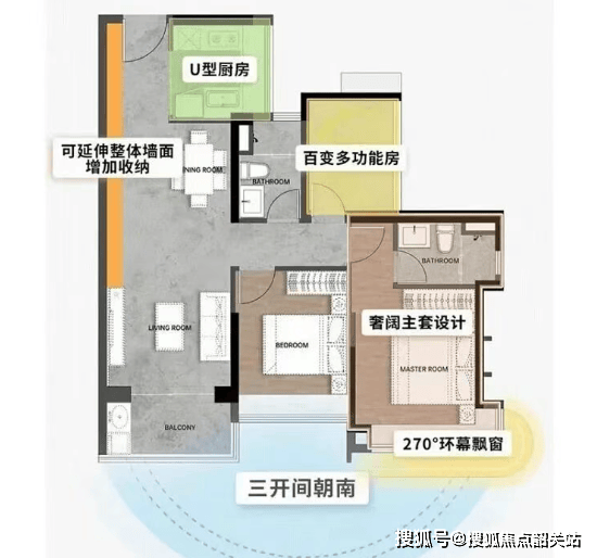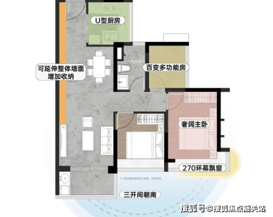 针对刚需群体,80㎡户型堪称“小而精”的典范。它拥有6立方米整墙收纳空间,极大提升了储物能力;南向9米超大采光面,让室内明亮通透;5平方米全景厨房,满足烹饪需求;更有270°景观主卧套房,即便在小户型中也能享受豪宅般的居住体验。