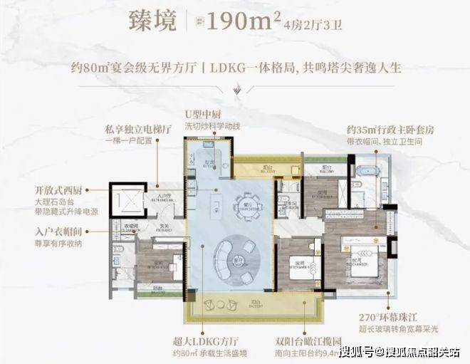 建筑品质上乘,采用定制级铝板、钻感玻璃幕墙,0.35 超高窗地比,门头为香槟金超五星级铝板,搭配劳斯莱斯星空穹顶艺术风雨连廊,归家仪式感满满。园林景观以 “8” 字形划分两大园林中庭,楼间距最大 75 米,移植 66 株名木古树,融合岭南文化元素,打造下沉庭院等景观,居住环境舒适宜人。
