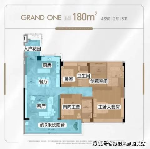 180㎡臻稀户型:4室2厅3卫,总价约1600万,双台盆豪华卫浴,270°景观视野。