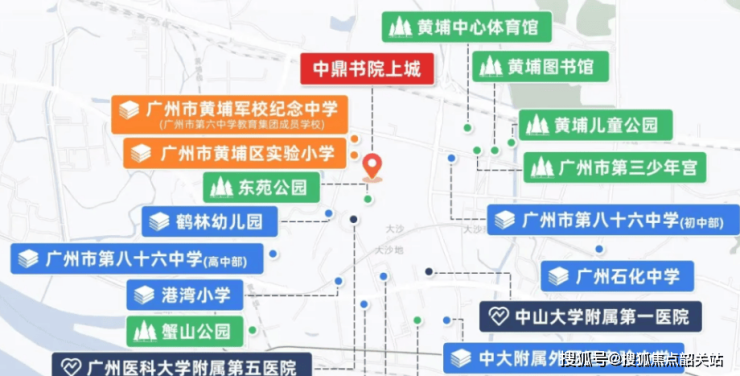 中鼎书院上城珺翎府位于老黄埔的核心区域,距离地铁5号线大沙地站仅约600米,步行至地铁站非常方便。从这里出发,两站即可到达三溪,八站直达珠江新城,极大地方便了居民的日常出行和工作生活。