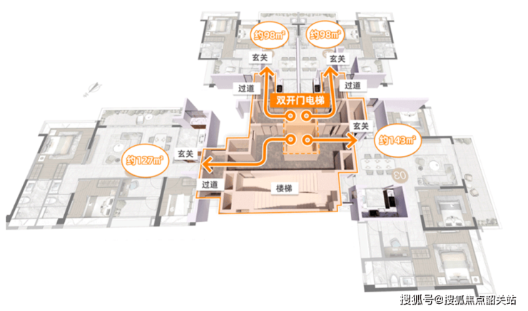 128㎡四房两厅两卫(竖厅):双阳台对流,大面宽采光面+超大方厅。