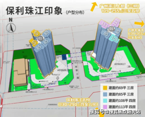保利·珠江印象推出69-113平方米的多种户型,涵盖了从紧凑三房到宽敞四房的设计,满足不同家庭的需求。