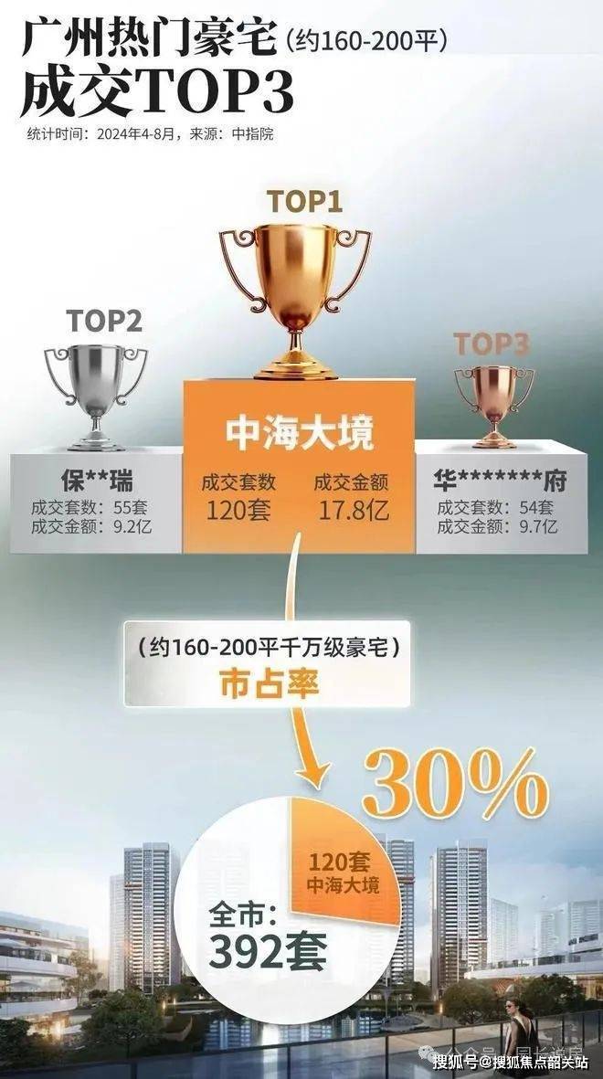 中海大境自推出以来便受到了市场的热烈欢迎,特别是今年4月以来,主打约160-200平米的大平层户型,销售成绩斐然,成交金额、销量和面积均位列广州豪宅市场首位,荣膺“三冠王”称号。令人瞩目的是,其市占率高达惊人的30%,意味着每三个购买该面积段千万级房产的买家,就有一个选择了中海大境。这一数据不仅反映了项目的强大吸引力,也证明了其在高端住宅市场中的领先地位。