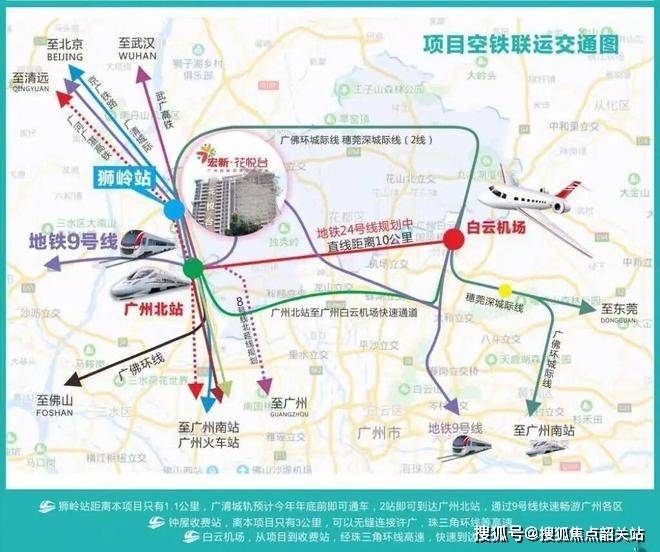 项目的交通优势同样不容忽视。花悦台位于广清高速与广清城际轨道的交汇处,紧邻花都狮岭站,居民可通过城际轨道快速往返广州各大商圈。无论是自驾出行还是公共交通,都极为便利。更重要的是,随着未来政府规划的“空港经济城轨快速生活圈”的逐步落地,周边交通将更加便捷,区域内的交通网络将进一步优化,大大提升了居民的出行效率和生活便利性。