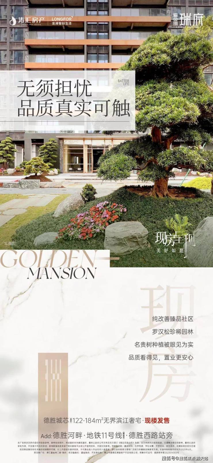 居者,当以天地为院,以江河为邻。顺德鎏金湾瑞府,踞守德胜河畔鎏金岸线,以罗汉松园林为笔,隐奢四房为笺,敬献塔尖人物的一方人生臻境。建面约122-184㎡纯改善奢宅,单价13000元/㎡起,静候时代人物藏鉴。