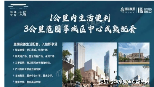 远洋北控天成位于南海金沙洲·里水中心小学旁,地理位置优越。项目周边交通网络发达,“1电车3地铁10大桥”的多维交通工程正在密集动工中,极大地提升了通达性。此外,距离高速路口约500米,方便居民快速到达广佛各区。社区内部还配建了一所12班的公办幼儿园,并且与省一级里水中心小学仅一路之隔,为业主子女提供全年龄段的优质教育资源。同时,在1公里范围内即可享受到便捷的生活服务,而3公里范围内则有多个大型购物中心,如梦汇尚城、信和广场等,满足各种购物娱乐需求。