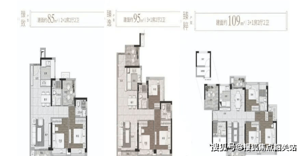目前在售的户型面积从85㎡至109㎡不等,涵盖了三至四居室的设计,具有极高的实用率。以109㎡的主力户型为例,它是一个3+1奢享户型,动线流畅,四开间朝南,无论是通风、采光还是景观欣赏都表现优异。南北观景生活双阳台的设计,加上主卧套间的配置,既彰显了尊贵感也保护了住户的隐私。