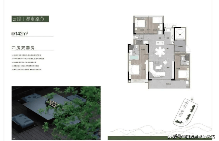 142㎡四房三卫:约5m多功能宽厅,南北通透,LDK布局约45m²一线云山会客厅,生活与自然交融,约8米奢阔大阳台,豪华主卧带步入式衣帽间,奢阔生活品质享受。