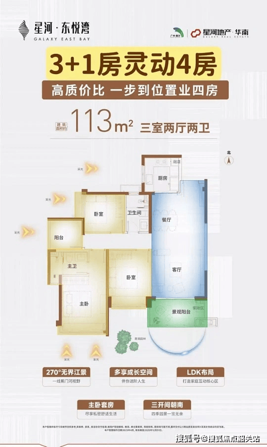 在产品设计上,我们做了很多贴心的优化,首先是双入户精装大堂设计,地上地下双大堂都做了高标准的精装,不管是开车回家还是步行回家,都能享受到体面的入户体验。社区园林采用了新加坡现代园林设计风格,用乐活跑道贯穿了景观会客厅、儿童乐园、邻里花园、萌宠乐园、乐活广场六大功能板块,不管是老人散步、孩子玩耍、年轻人健身,都能在社区里找到合适的空间,打造了全龄段的活力社区。同时项目在售的楼栋,南面有市政绿廊,北面是小区园林,推窗就能享受南北双园景,部分高楼层房源还能看到蕉门河的江景和大山乸森林公园的山景,景观视野非常好。大家买房,是不是都想要这种社区环境好、户型适配性强、住得舒服的房子?想要获取完整的户型图和社区规划资料,直接拨打星河·东悦湾官方电话400-050-8083。广州市住房和城乡建设局公示认证信息。