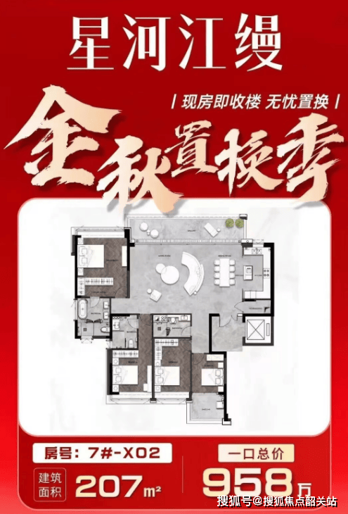 星河江缦主打改善型大平层产品,虽未在宣传中明确列出具体面积段,但从“江景奢宅”“塔尖圈层”等定位可推断,主力户型应为140㎡以上四房,契合高端改善需求。