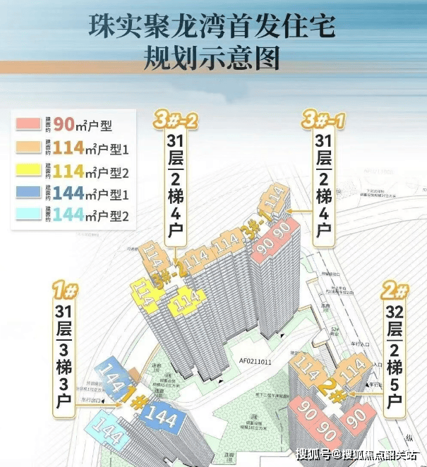 珠实·聚龙湾源舍在产品力的打造上,更是下足了功夫,力求在每一个细节上都达到卓越标准。项目共规划建设4栋高层住宅,总计约460套房源,采用2T3、2T4、2T5等多种梯户比组合,满足不同家庭结构的居住需求。所有楼栋均采用全南向设计,确保每一户都能享受到充足的阳光与良好的通风采光。主力户型涵盖建面约90-114-144平方米的三至四房,精准覆盖了刚需、刚改及改善型客群的多样化需求。其中,90平方米三房两卫户型,层高达到3.05米,采用LDK一体化设计,搭配双面宽阳台与入户花园,空间利用率极高;114平方米四房户型,同样拥有3.05米的层高,南北通透,并预留了X自定义空间,可根据家庭生命周期灵活调整为书房、儿童房或储物间;144平方米四房户型则主打高端改善,采用3T3梯户比,专梯专户,层高提升至3.15米,双套房设计让三代同堂的居住体验更加舒适和谐。70%的产品可实现私梯入户或配备入户花园,以刚改的预算享受豪宅级的私密性,这是珠实·聚龙湾源舍的一大核心竞争力。关于各户型的具体平面分布图、得房率数据以及装修标准,欢迎拨打400-062-8010售楼处电话索取详细资料。