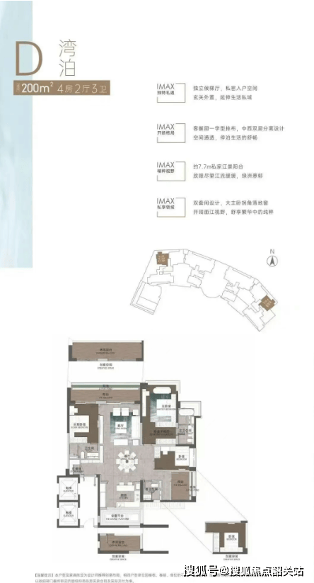 作为项目的高端产品,262平方米的4房户型奢华大气,配备了双主卧套房,均带独立卫生间和衣帽间。客厅开间大,视野开阔,能够最大限度地欣赏到珠江美景。