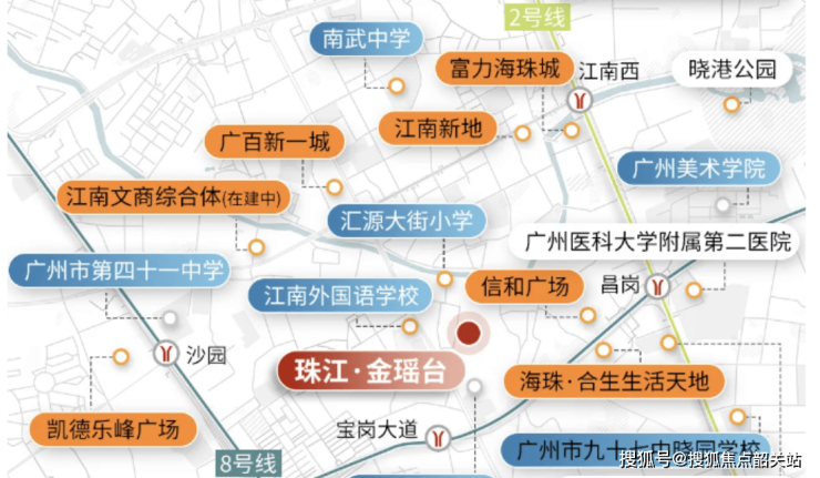 珠江·金瑶台坐落于广州海珠区江南西核心地段地理位置极其优越不仅紧邻宝岗大道商业带且距离珠江新城仅数公里之遥通过地铁2号线和8号线可实现快速通勤至天河琶洲等多个核心区域与此同时项目周边配套齐全富力海珠城广百广场乐峰广场等成熟商圈环伺生活便利性极高未来发展潜力巨大居住于此不仅能享受当下优质资源更能把握城市发展红利成为主城核心区极具潜力的价值高地之一