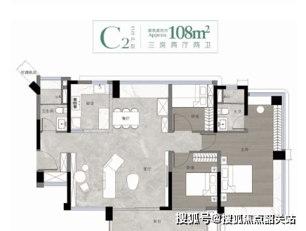 108㎡户型:宽敞舒适,适合追求更高生活质量的家庭。