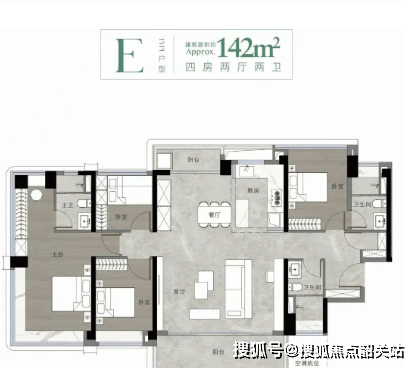 142㎡户型:大面积户型,拥有更开阔的空间感,满足大家庭的需求。
