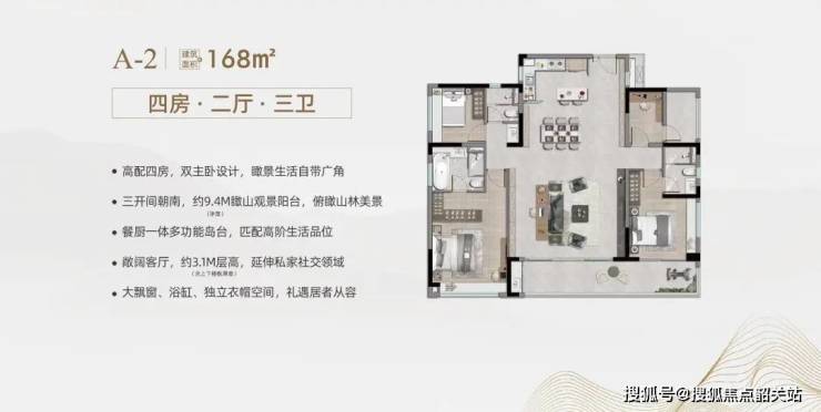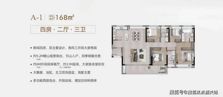 142 平方米的户型则更注重空间的宽敞和功能的完善。整体户型方正,南北通透。客厅采用 LDK 一体化设计,与餐厅、厨房相连,形成一个宽敞明亮的公共活动区域,增强了家庭成员之间的互动。约 6.1 - 9.4 米宽的山景阳台,将室外的自然美景引入室内,让您在休闲时光能够尽情享受阳光和清新空气。卧室空间布局合理,主卧配备了 L 型衣帽间,将衣帽间和睡眠区分开,既保证了隐私,又提升了空间的实用性。同时,主卧还打造了背景墙,增添了卧室的大气与温馨。