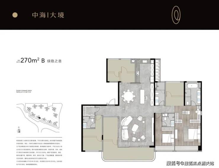 建面270平4+1房,开发商设计了一个超大的空中花园,这种尺度的花园,不管是做成空中花园还是户外餐吧或是星空观景都不是问题。