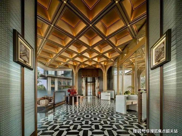 宝格丽酒店式大堂:采用下沉式设计,金色格栅与典雅地面营造奢雅质感,仿佛置身上海宝格丽酒店的私享秘境。